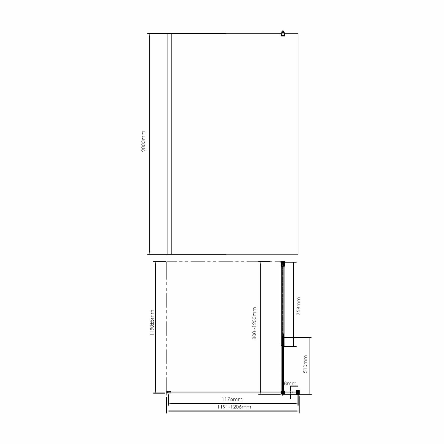 Данный фиксатор позволяет регулировать расстояние между стеной и стеклянной перегородкой в диапазоне от 80 до 120 см.